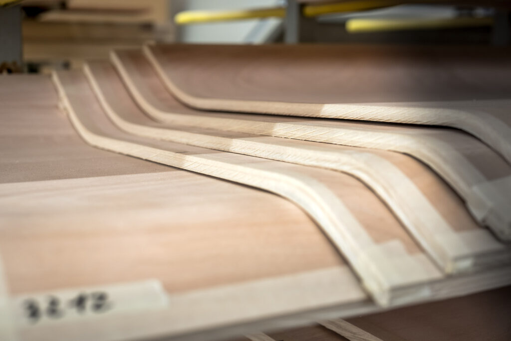 Il prodotto rifinito, con il materiale decorativo saldamente aderito al substrato, viene successivamente sottoposto a ulteriori processi di finitura, come la rifilatura dei bordi, la levigatura o un’ulteriore lavorazione per ottenere le dimensioni e l’aspetto finali desiderati.